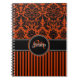 Caderno Espiral Damasco Preto Laranja Personalizado, Branco Estimu