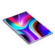 A vibrant, abstract composition features swirling patterns and bold colors, including greens, reds, and purples. The dynamic arrangement creates a sense of motion and energy- Blue version.