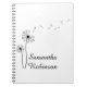 Caderno Espiral Dandelion preto e branco soprando no vento