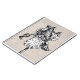 Desenho preto e branco do vintage de uma íris em um fundo que imite o papel de jornal velho.