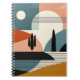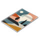 Uma paisagem abstrato de uma cena do deserto com linhas e formas em tons de marrom, laranja, turquesa, bege, bronzeado e preto.