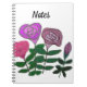 Este notebook útil tem um design colorido com meu desenho estilizado de três rosas coloridos diferentes baseados na flor real. O texto pode ser alterado se você quiser personalizar o notebook como presente.