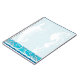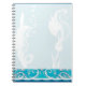 Desenho original de Sandra Gale de dois cavalos marinhos em silhueta contra um fundo azul pálido e uma borda de água azul e espiral. design de excelente para banheiros, quartos e quartos para crianças.