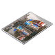 Fotografia de Piccadilly Circus em Londres num dia chuvoso com as famosas luzes refletindo no pavimento impresso no cobrir de um notebook.
