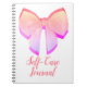 Um caderno de notas personalizado para escrever suas notas, lembretes, diário, composições escolares, receitas, etc. Diário de Auto Cuidado com Laço Rosa Bonito Caderno Útil. Muitos usos e múltiplos propósitos. Personalize com nome, iniciais, mensagem, citação ou qualquer coisa que você deseje.