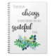 Um diário com um desenho floral e de borboleta na frente e as palavras - Sempre há algo para ser grato.