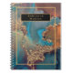 Caderno Espiral Diário de Monograma de Tinta Azul Moderna Dourada