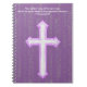 A frente deste caderno espiral de revistas apresenta um padrão de colheita para o fundo de uma cruz de fé ilustrada, ambas recriadas por mim em tons roxos. A Escritura de bíblia de 2 Crônicas 6:40 está no topo da imagem. Solicitações de oração escrevendo, listas ou pensamentos é uma boa maneira de rastreá-las, assim como rastrear orações respondidas. Rezar pelos outros é um privilégio e há alegria quando as orações são realizadas. Isso seria um presente de excelente para qualquer um que gostasse de guardar orações e pensamentos lembrados e que seja útil quando se encontra em bolsa ou em Estudos de Bíblias. Também daria um belo presente de Natal ou Páscoa.