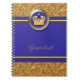 Caderno Espiral Diário Elegante da Coroa Azul Dourada e Real