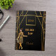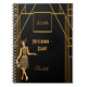 Ouro falso elegante e brilho para o estilo de 1920, notebook temático, diário. Um caderno de estilo de deco artístico em ouro falso e preto. Decorada com uma garota de papel de flapper estilo 1920 e um quadro de estilo de decoração de arte. Modelos por um ano, texto e um nome.