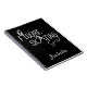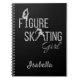 Bloco de notas personalizado para a garota patinadora - um belo presente de patinação artística para criar um diário, desenhar ou fazer anotações sobre prática! Cores: efeito brilhante prateado sobre fundo preto. Design: "Garota patinadora" + silhuetas de patinadora em vez de letras + personalize com o nome do skater. Projetado por iceskatingpassion.com. Outras cores no compro
