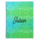 Caderno Espiral Dispersor azul-gradiente monograma e brilho verde
