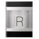 Caderno Espiral DIY Monogram Name, Black Grey Text, Brushed Silver