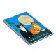 Notebook em ilustração de um gato de smoking preto-e-branco e uma tábua laranja, sentados sob um céu estrelado com lua de cheio. Cercados por vegetação silenciada, eles criam uma cena noturna serena. O texto brincalhão "A Purrfect Night" acrescenta relutância à ilustração.