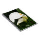 Um notebook de tamanho pessoal, encadernado em espiral, que apresenta uma foto cobrir de dois lírios brancos, elegantes, e com sua folhagem verde. Um design floral adorável! Use como diário ou para fazer anotações.