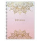 Caderno Espiral Dourado Mandala Rosa Bege Chique Glamour Moderno G