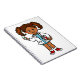 O doutor está dentro. Está aqui uma menina muito bonito que sonhe de se transformar um doutor. Este design mostra uma menina vestida em um casaco branco do laboratório, em um vestido azul e em umas sapatilhas vermelhas. Está guardarando uma grande agulha e uma prancheta com um coração vermelho brilhante nele. Faz um presente ou uma inspiração ideal para o doutor pequeno em sua família.