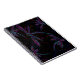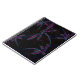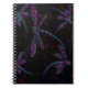 Cinco libélulas roxas fabulosas e píxeladas azuis flertando sobre um fundo preto mosqueado.