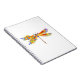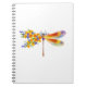 Pintura artificial, libélula floral em laranja e roxo contrastantes com papoila amarela, brilhante e florescente da Califórnia e flores silvestres azuis em fundo branco.