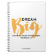 Um design tipográfico inspirador no seu notebook para escrever seus planos, anotações em diário, etc. A legenda principal diz "Dream big" em preto e amarelo numa mistura de sans serif e pincel com letra escrita. Diretamente por baixo está o popular verso Bíblia Philippians 4:13 - "Eu posso fazer tudo através do Cristo". Personalize com seu nome. Faz um presente excelente talvez para um jovem que você está mentindo.