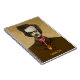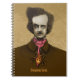 Edgar Allan Poe, aterrorizado, a ver um inseto de ouro a subir na gravata. Desenho colorido da caneta de tinta. Texto personalizado.
