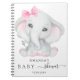 Um livro de hóspedes de chá de fraldas celebrando uma menina. Um fundo branco na moda com uma linda garota elefante. Adicionar um nome e uma data.