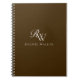 Create your own custom notebook with personalized monogram initials in elegant modern typography on brown color background.