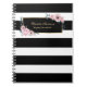 Caderno Espiral Elegant Girly Black White Stripes Pink Floral