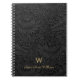 Caderno Espiral Elegant Gold Monogram Name Black Floral Pattern