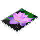 Stunning lilac lotus flower in full bloom against dark green foliage on personalized notebook.