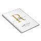 Moderno, Chic, Elegante Caderno Espiral de Monograma Inicial Branco e Dourado com Nome Feminino. Este design simples e minimalista de cor lisa apresenta seu primeiro nome em um lindo estilo de letra manuscrita com tipografia de cauda preta e monograma dourado inicial, modelo de linha de nome completo e texto sobre fundo branco. Fácil de personalizar. Ótimo presente personalizado feminino para festa de aniversário, inauguração, casamento, festa de aniversário de 16 anos, chá de noiva, chá de bebê, volta às aulas, negócios, profissional e para quem ama estilo elegante e minimalista.