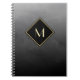 Faça uma declaração com este elegante e na moda, notebook preto e monograma. Este simples e sofisticado design de gradiente escovado com uma estrutura moderna em forma de diamante pode ser personalizado adicionando seu primeiro monograma. Imagem plana, NÃO metálica.