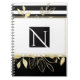 Caderno Espiral Elegante Glamor Botânico Dourado Moderno Preto