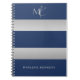 Caderno Espiral Elegante Monograma Prata Personalizado Azul Naval