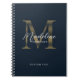 Caderno Espiral Elegante Rótulo Metálico Azul Naval Dourado Monogr