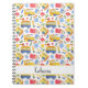 Notebook com nome personalizado engraçado com um barramento colorido amarelo-d'água em padrão. Nome personalizado animado e perfeito para os alunos ou professores que voltam à escola.