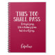 Quando os tempos são difíceis, é importante manter-se positivo e lembrar-se de que acabará por melhorar. Também é importante manter seu senso de humor. Este caderno diz, "Isto também vai passar. Pode passar como uma pedra no rim, mas vai passar." num estilo tipográfico bonito. Você pode mudar a cor de fundo se quiser. Um presente de excelente para encorajamento ou simpatia. Qualquer um dos designs que você vê nesta loja pode ser personalizado e colocado em qualquer um dos muitos produtos Zazzle - basta entrar em contato comigo usando o link "Entre em contato com este Designer" abaixo.