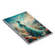 Uma mulher cabeleira turquesa entre as flores