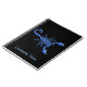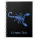 Desenho de escorpião azul com sombreamento 3D. Cor de fundo personalizada. Texto personalizado.