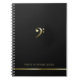 Este moderno e elegante notebook preto apresenta uma clave de baixo em ouro falso. Perfeito para escritórios de escolas de música, professores de música, estudantes e muito mais. Personalize-o com seus próprios detalhes e utilize a ferramenta de edição para fazer outros ajustes, como tamanho e posicionamento da fonte.
