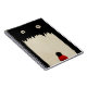 Este design fofo mas assustador apresenta uma criança vestida de vermelho esperando em frente a uma porta em uma sala escura. A porta é cercada pelo monstro da sombra com uma boca aberta e dentes afiados. Este é um design um pouco assustador, mas fofo para os amantes do Halloween.