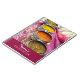 O caderno de receitas indiano impresso com uma fotografia colorida de potes de especiarias prateadas num sari rosa e dourado indiano