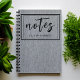 Tecido de jeans cinza claro impresso, grande título 'notas' em letras de caligrafia moderna e nome minimalista são apresentados neste caderno espiral clássico, diário, planejador. A borda dupla e o texto são pretos. Altere facilmente o nome para torná-lo seu usando o modelo fornecido. Para editar e alterar o estilo da fonte, cor da fonte, tamanho e mais - use a Ferramenta de Design. Este caderno contém 80 páginas, pautado em preto e mede 6,5" x 8,75". Excelentes avaliações.