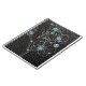 Caderno Espiral estilo falso de couro preto com flores de cinza e