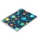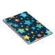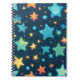 Estrelas brancas amarelas, vermelhas e azuis brilhantes em design de padrão de fundo azul.