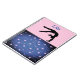 Adicione o nome da sua ginasta na frente! Também na frente está uma silhueta de ginasta fazendo um salto com as mãos para trás! Cores rosa e azul com estrelas por todo o lado!
