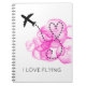 Caderno Espiral Eu Adoro Voar Avião Cardíaco Pink Clouds Divertido