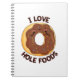 Caderno Espiral Eu Amo Comida com Buraco Piada de Donut Engraçada