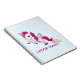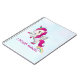 Um caderno espiral com um ditado engraçado: Eu faço mágica. Projetado com um unicórnio alado branco com mané rosa, cauda e cascos. A buzina tem anéis de cor arco-íris e parece um pirulito doce. Este unicórnio fofo está se erguendo nas pernas traseiras. Doce cor-de-rosa na bochecha e longos cílios femininos. Um arco-íris ao lado da palavra mágica.