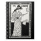 Folheto de Art nouveau de uma senhora afiando uma caneta de escrevendo